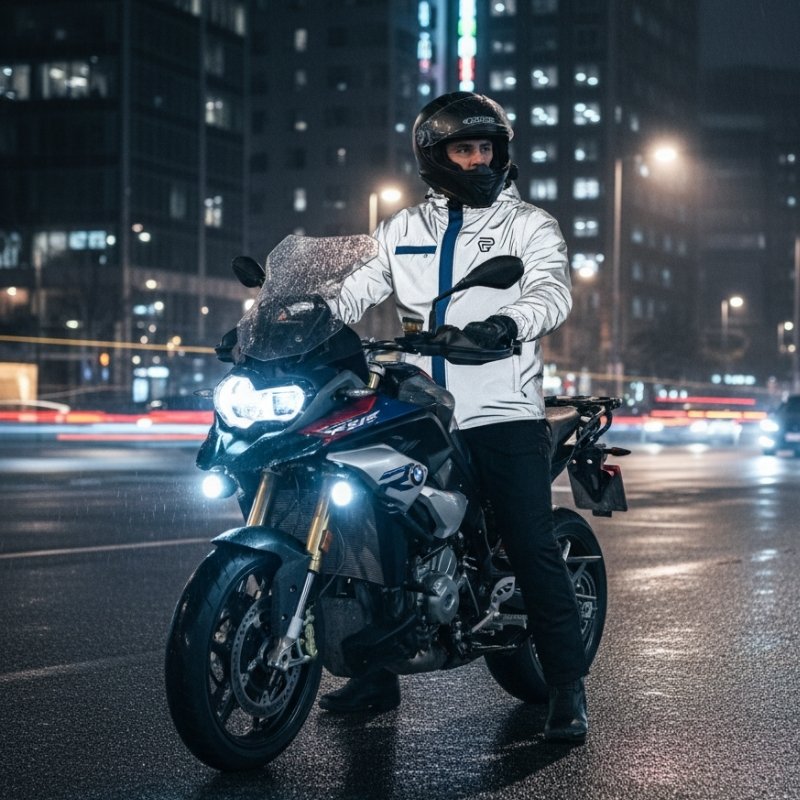 • Chaqueta con tela 100% reflectiva e impermeable para motociclistas, te hará visible a más de 500 metros de distancia.