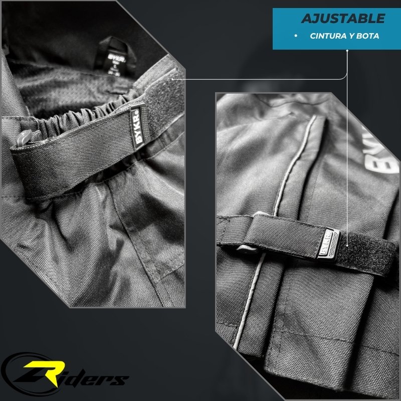 • Construcción duradera y rendimiento para todo tipo de clima, perfecto para todos los deportes de motor. Meticulosamente elaborados con telas de cordura y reissa resistentes al agua, los pantalones BYKR te mantienen seco durante los paseos lluviosos. Experimenta un rendimiento impermeable extremo y mantente enfocado en el camino por delante.